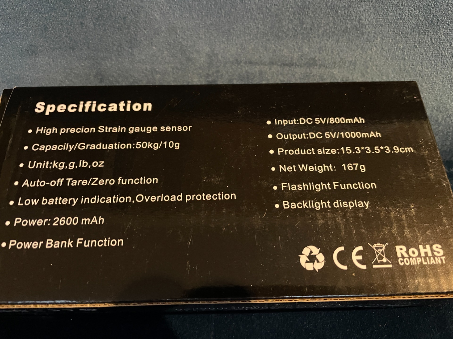 Digital bagasjevekt-opptil 10g-50kg, powerbank 2600 mAh, og innebygget LED lys.